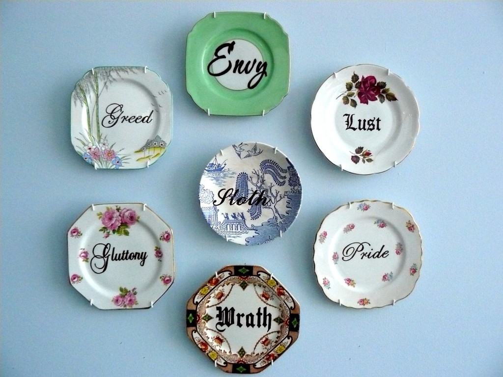 Har du lyst til å prøve å lage noe tilsvarende, er det bare å ta en tur til nærmeste bruktbutikk og kjøpe inn vakre gamle tallerkener. Eller rett og slett åpne kjøkkenskapet. Deretter går turen til en hobbyforetning hvor du kjøper inn porselensmaling eller porselenstusj/penn. Hvis du er like ustø på hånden som meg, er det også lurt å ta med seg bokstavmal. Herdes i ovnen når ferdigmalt.